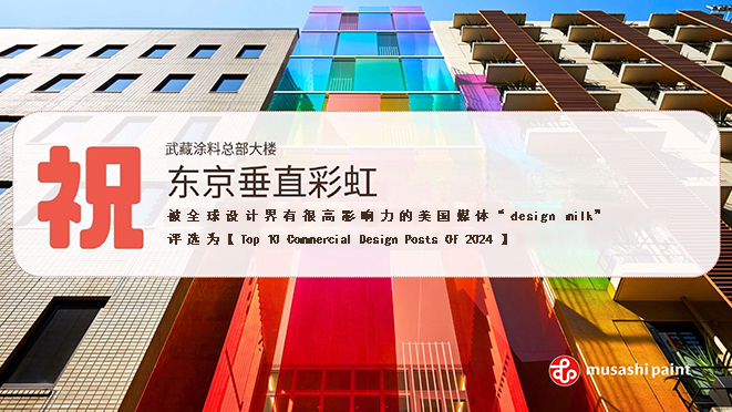 武藏涂料总部大楼“东京垂直彩虹”在得到“亚洲建筑设计奖”之后,又被美国在线设计媒体“design milk”评选为“2024年十大商业设计”!