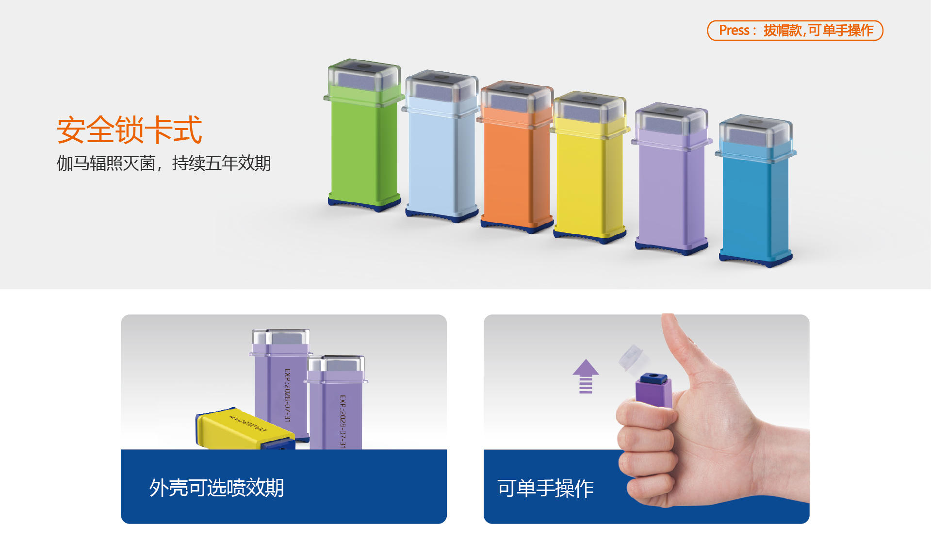 | 颜色 | 产品代号 | 规格 | 刺穿深度 | 参考血量 | 标准包装 |