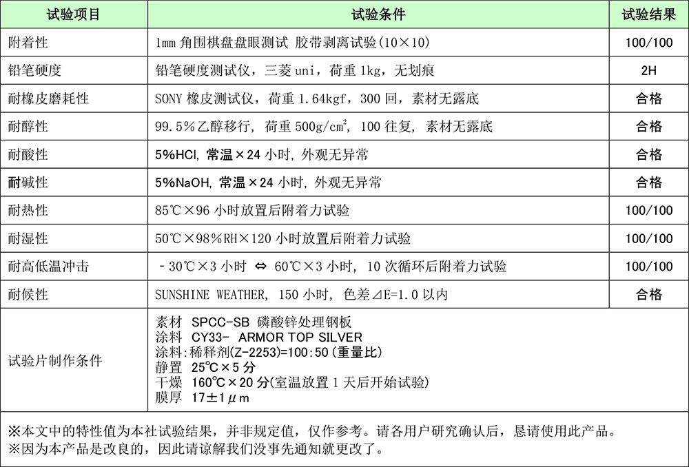 为满足此需求,本公司研发了一液热硬化型面向金属的高硬度涂膜涂料,即高硬度、耐擦伤性、耐磨耗性优异的划时代涂料--- ARMOR TOP CY33-。