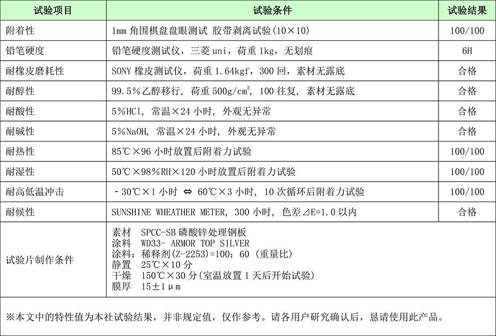 为满足此需求,ARMOR TOP 单液热硬化性 HARDCOAT 应运而生。此前只有 UV 硬化体系能达到的高硬度、耐擦伤性、耐磨耗性的涂膜性能,现在通过烧印干燥即能获得,是一款划时代的金属用涂料。为了满足国内销售定位以及环保要求的创新技术为目标,WD33-系列涂料被开发出来。
